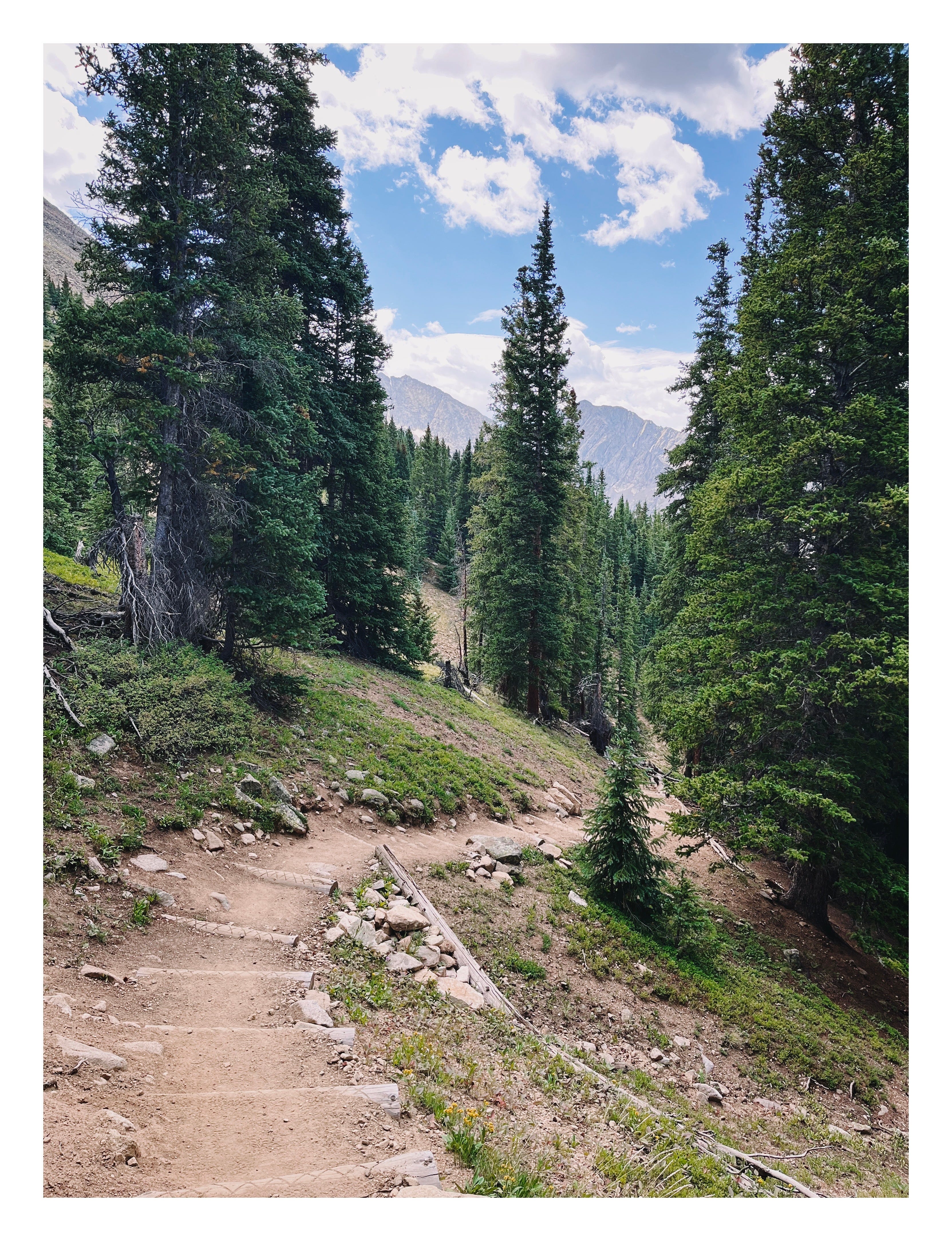 Descending Mt. Yale in the August morning sunshine while listening to the LOTR soundtrack, Ariana dancing on ahead.